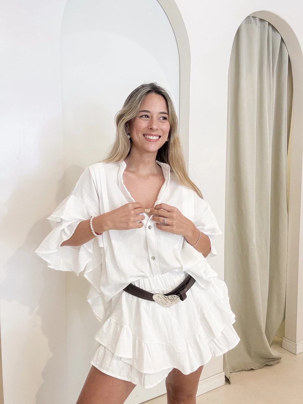 Camisa mangas cortas con detalle de voladito.