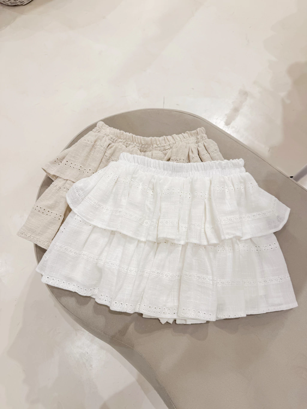 Mini con voladitos, elastico en cintura y short en la parte de adentro.